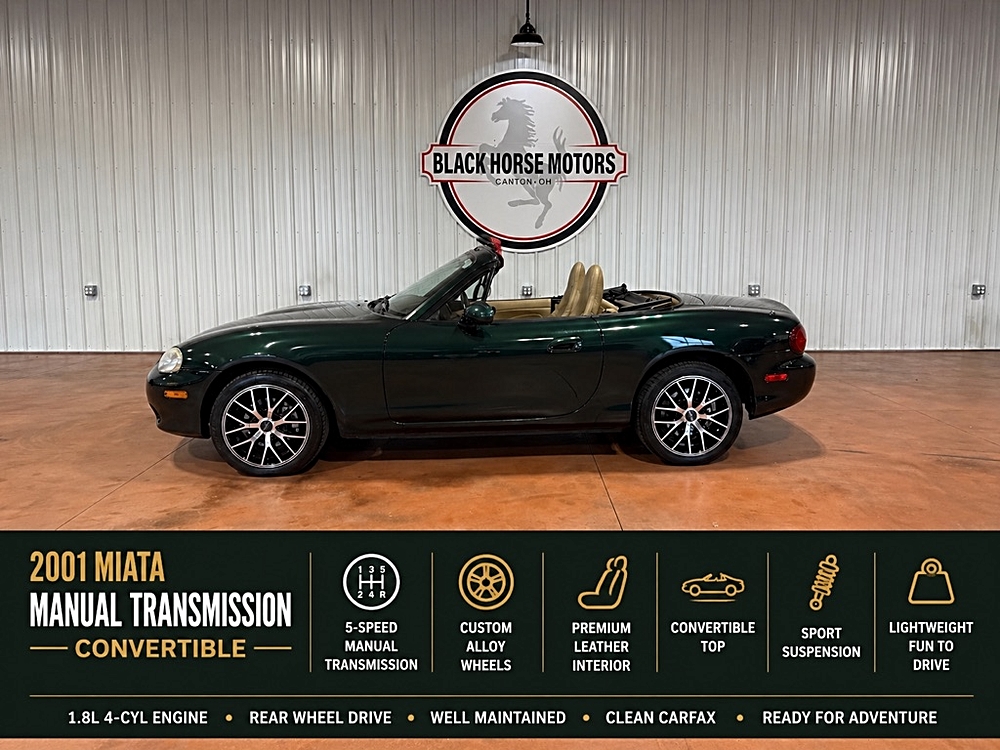 Enjoy pure, lightweight driving fun in this classic 2001 Mazda MX-5 Miata, finished in the iconic British Racing Green over…